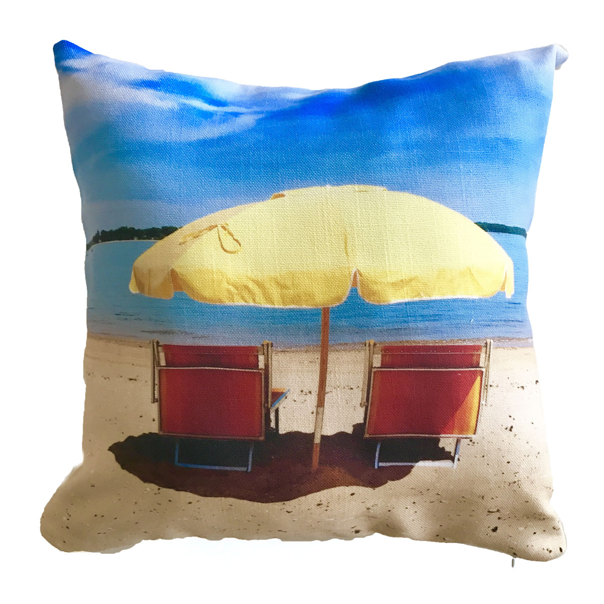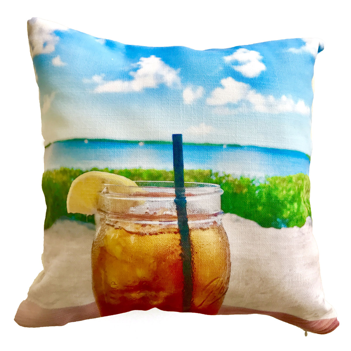 Cotton weave blend with hidden zipper and synthetic stuffing.